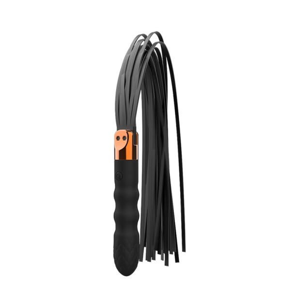 Vibrador recarregável com chicote em camurça. Possui 10 modos de vibração.