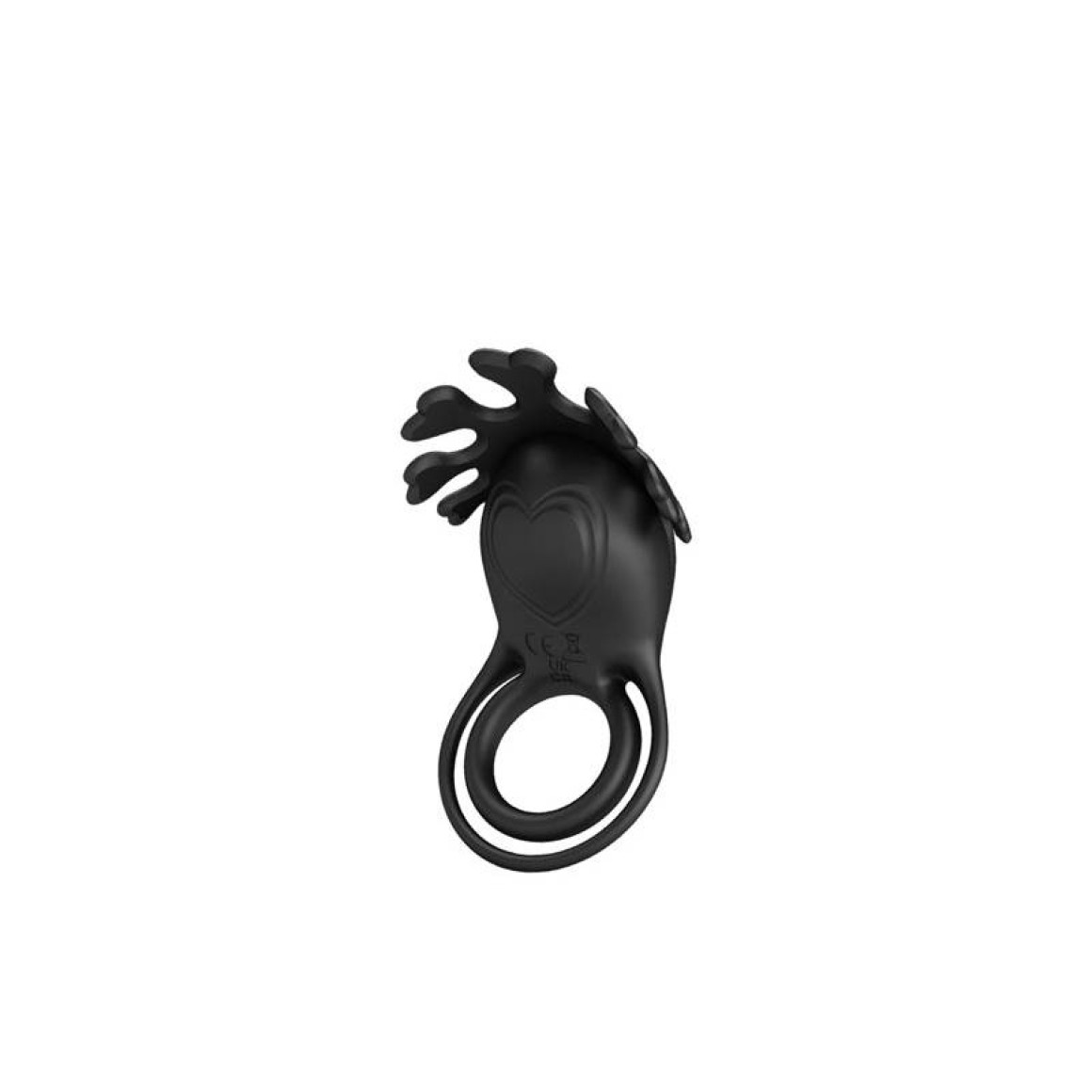 Anel peniano recarregável com estimulador clitoriano e alça para o escroto. Possui 7 modos de vibração.
