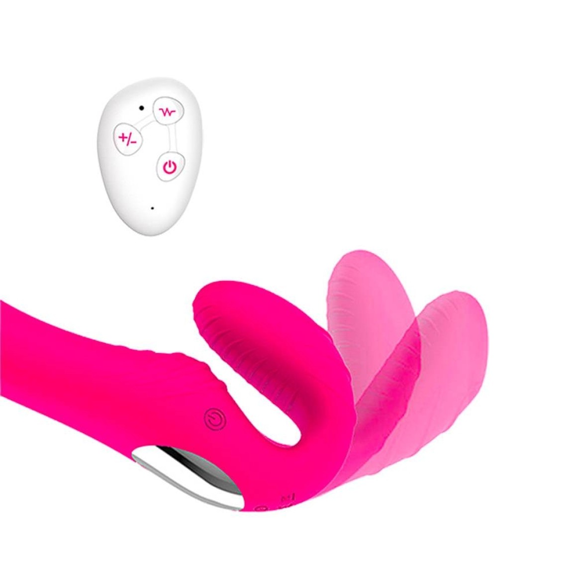 Penetrador Strapless com plug vaginal, permite o uso sem cintas, acompanha controle remoto para controlar seus 10 níveis de vibração intensas.