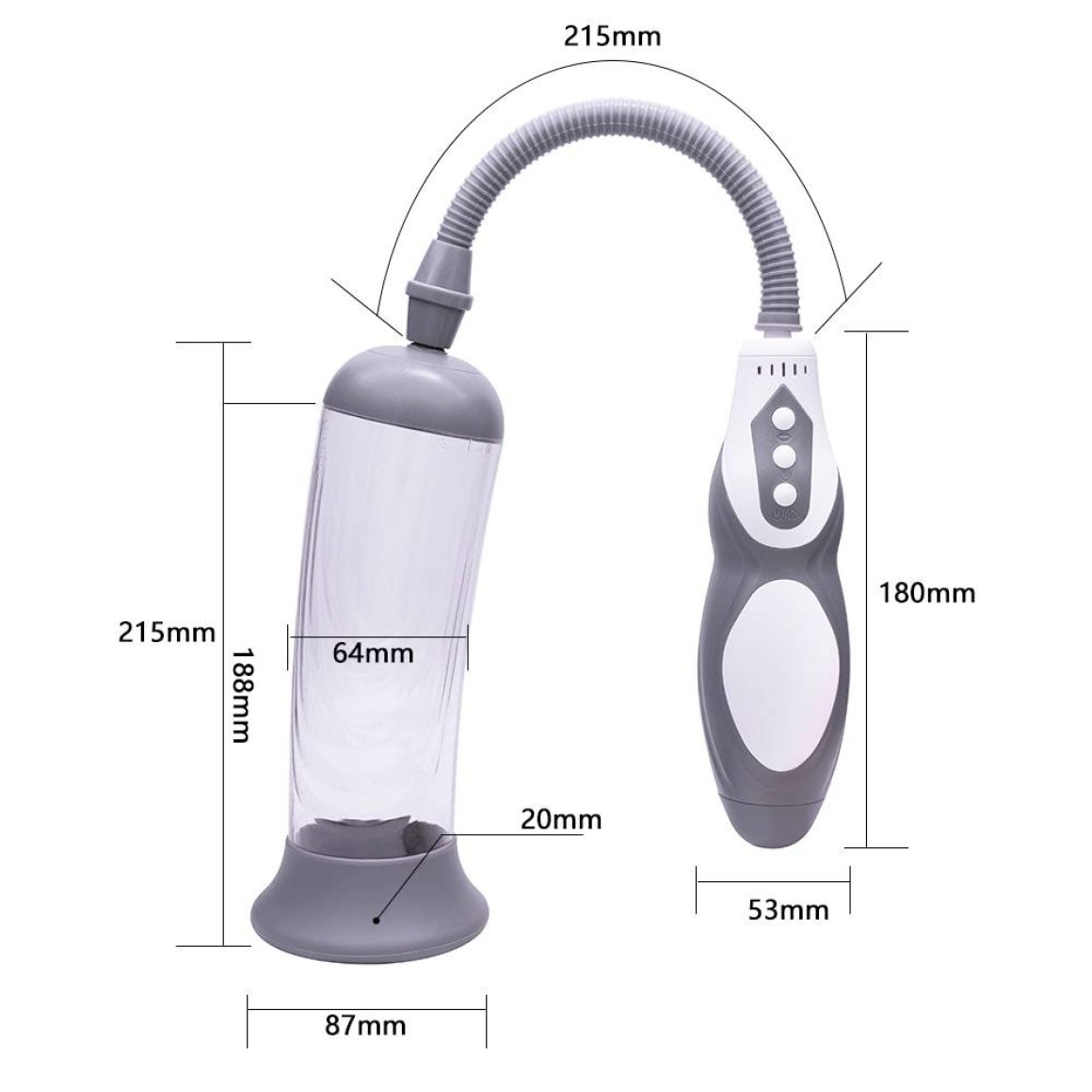 Bomba Peniana Elétrica Recarregável com 4 modos de sucção e 4 intensidades de sucção.