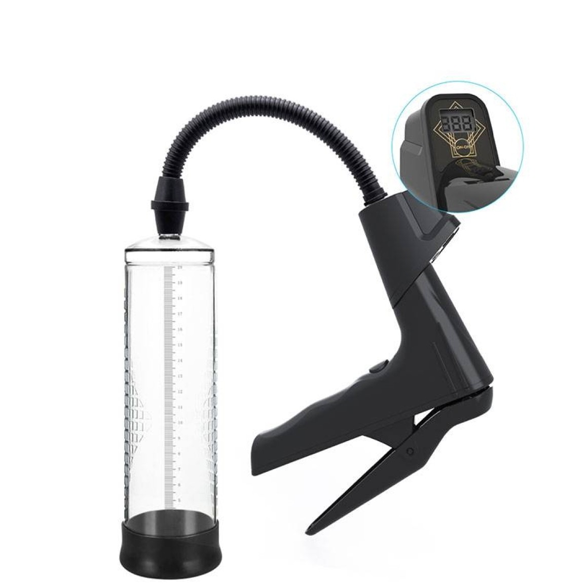 Bomba peniana manual com sistema de pistola e manômetro digital.