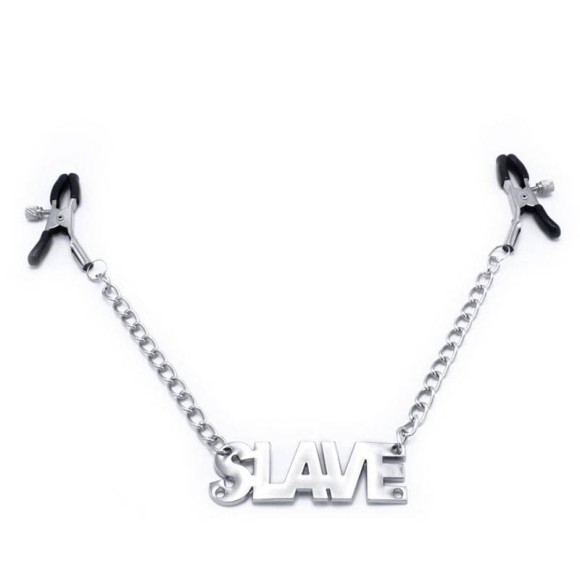 Par de Grampos para Mamilos com Regulagem e Pingente Escrito SLAVE