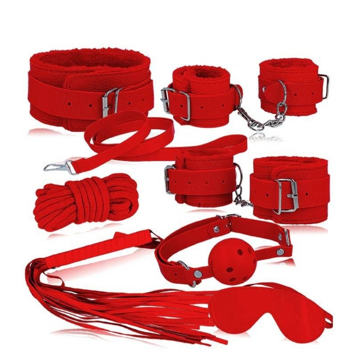 Kit Bondage com 7 Peças com Forro em Pelúcia