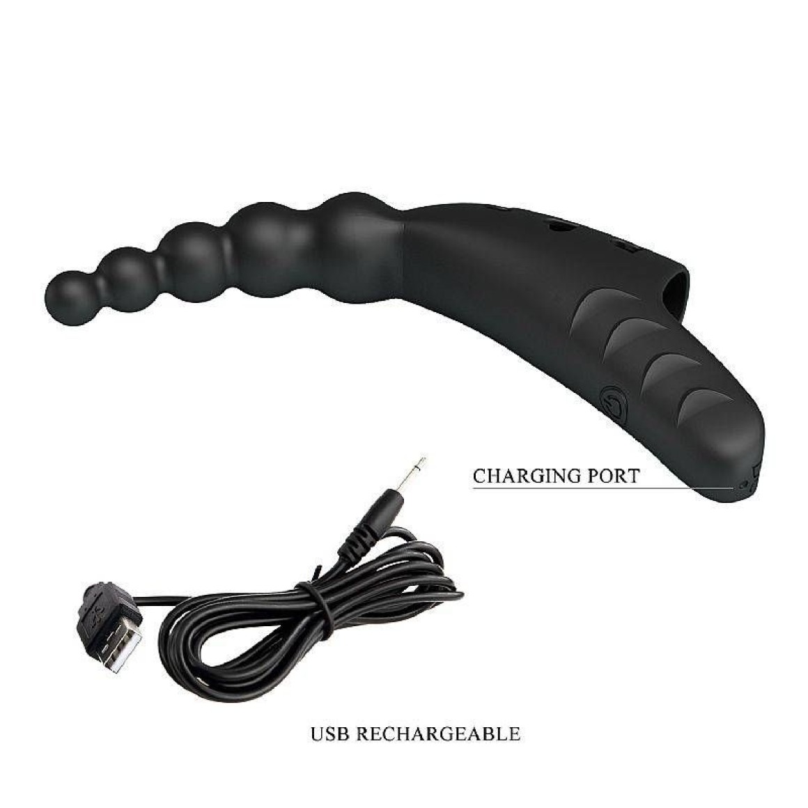 Possui alça para o dedo, o que facilita o manuseio e a estimulação.