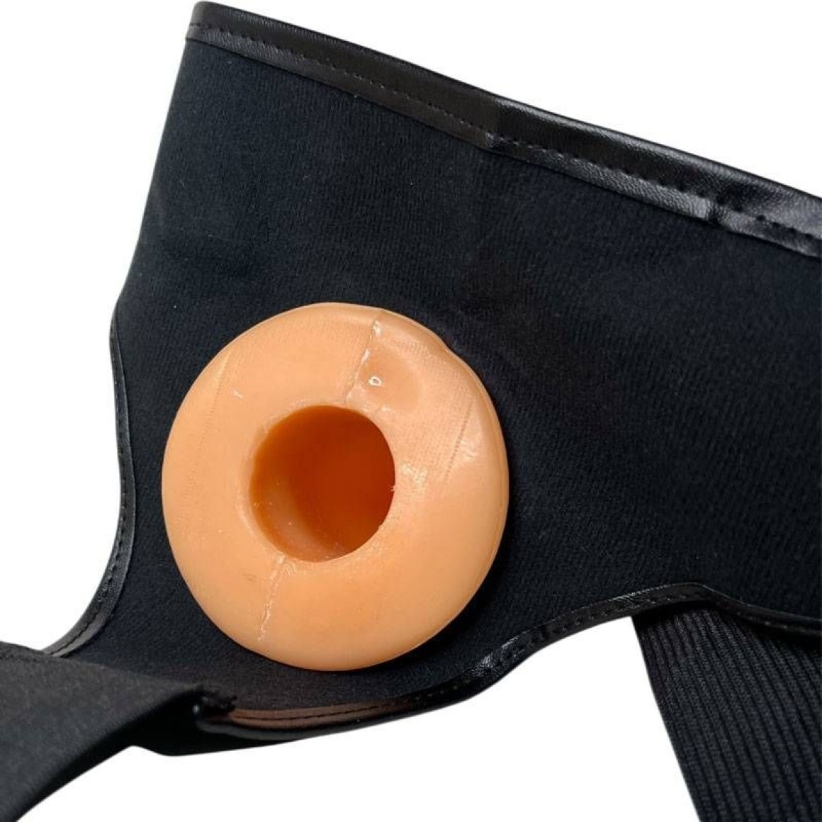 Cinta peniana com pênis oco, possui glande e veias salientes.