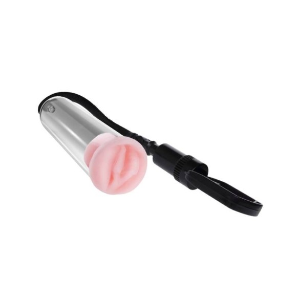 Bomba peniana manual com sistema de alavanca, possui 3 anéis de diferentes diâmetros e anel formato vagina.