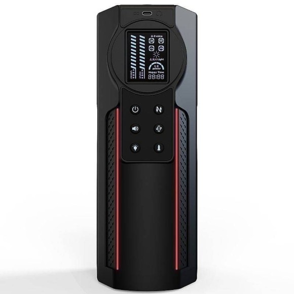 Masturbador masculino com formato de lanterna - possui  10 modos de vai e vem. 10 modos de vibração, com voz.