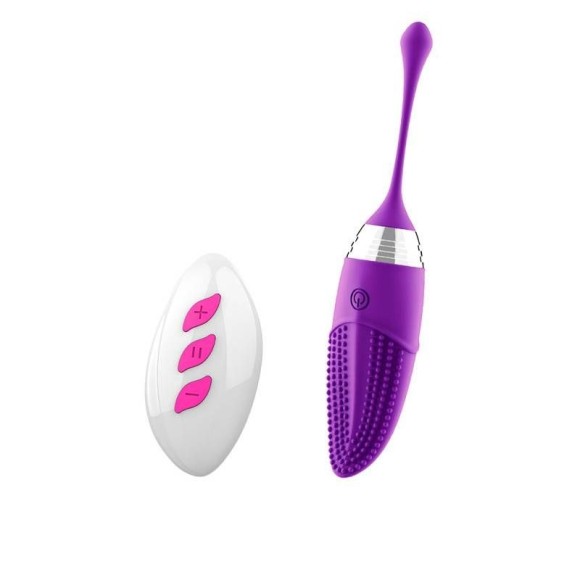 Bullet recarregável, formato língua, com 12 modos de vibração, cerdas massageadoras, controle wireless que permite comandar a cápsula em até 10 metros de distância.
