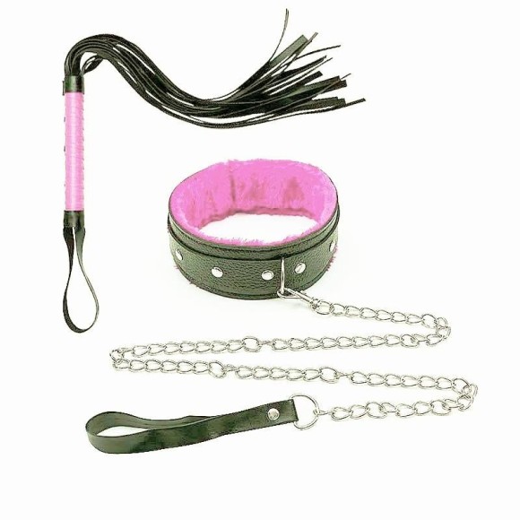 Kit Coleira com Guia de Corrente Luxo e Chicote