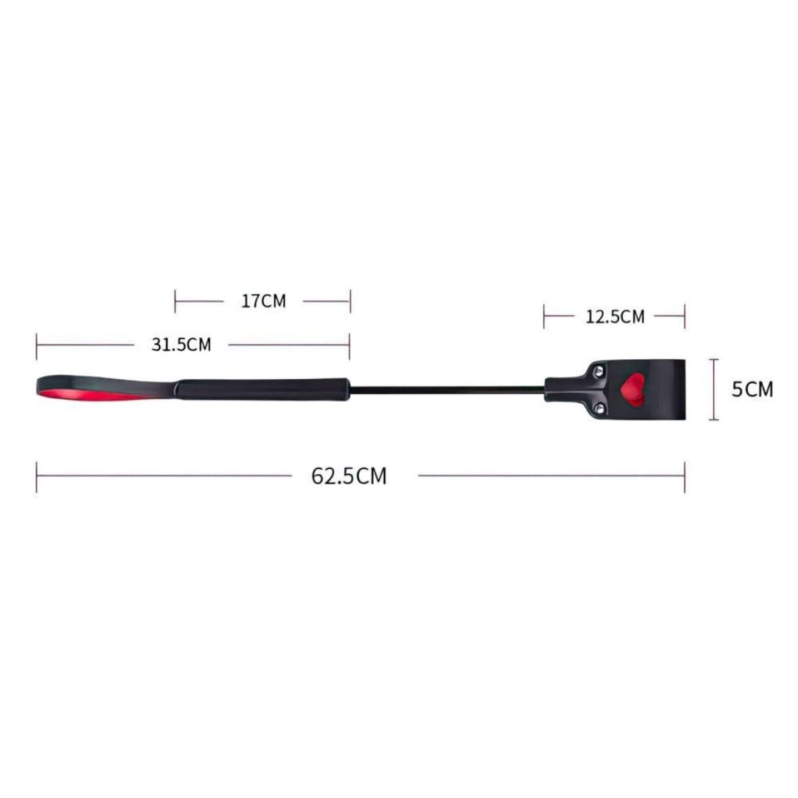 Com 62,5 cm de comprimento e 5 cm de largura, a chibata oferece alcance, leveza e precisão durante o uso. -