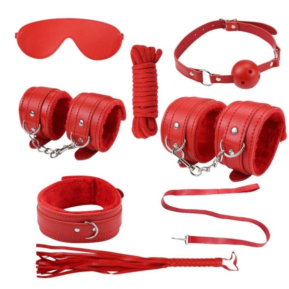 Conjunto completo para práticas de BDSM e bondage, ideal para casais que desejam explorar imobilização, controle e novas sensações. Inclui algemas, tornozeleiras, coleira com guia, venda, mordaça, chicote e corda, todos confeccionados em couro sintético resistente e metal, garantindo durabilidade, conforto e segurança.
