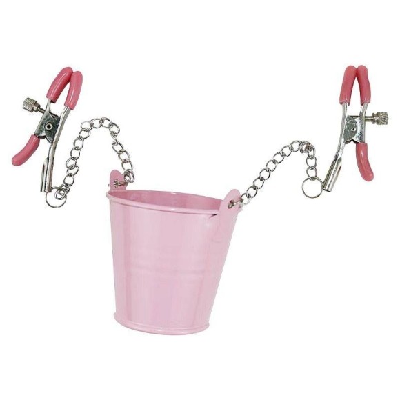 O prendedor de mamilos possui ajustes e guizo de metal.