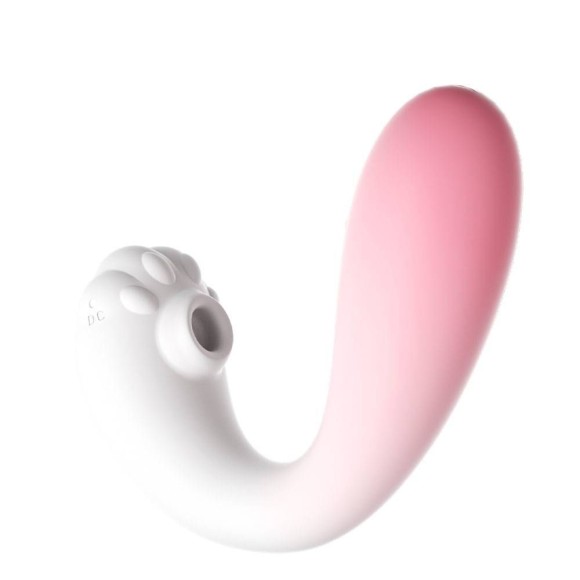 Gradiente de cor do produto.Composto por um eixo principal que penetra e estimula o canal vaginal com 10 modos de pulsação, juntamente com um estimulador de clitóris com 10 modos de vibração, este produto é completo e oferece um prazer inigualável.