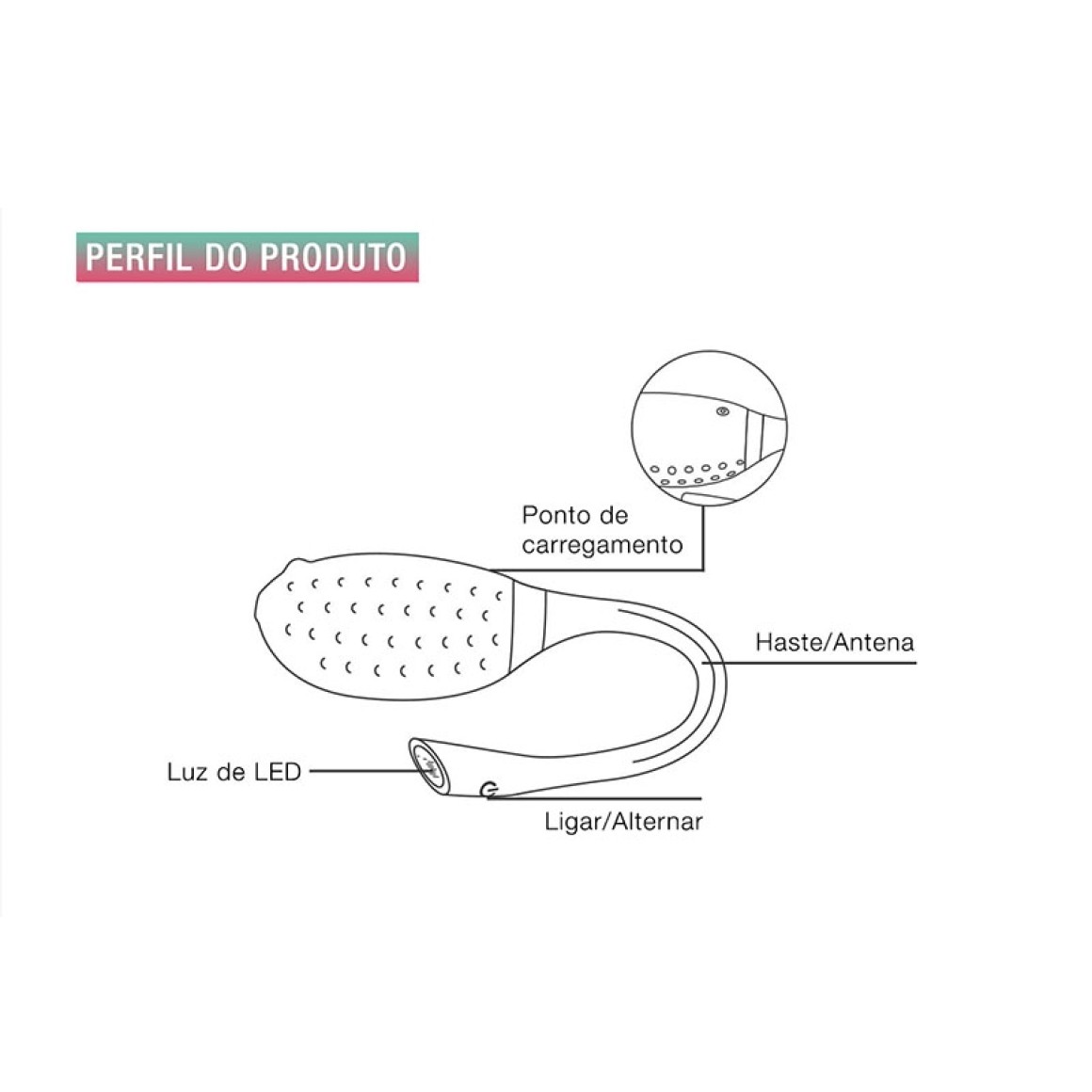 Na ponta da haste, você encontrará um botão para ajustar a vibração do corpo do vibrador. O interessante é que o Fugu pode ser usado manualmente ou conectado a aplicativos disponíveis inclusive a distância sema necessidade do parceiro estar no mesmo ambiente.