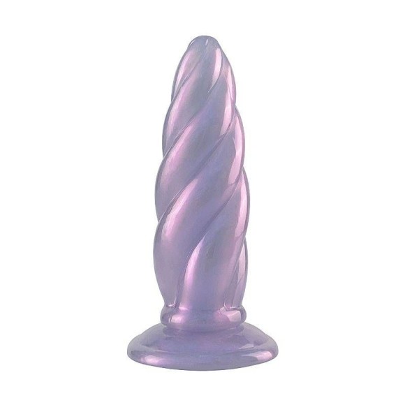 Plug anal feito de um material macio e consistente com base que facilita o manuseio.