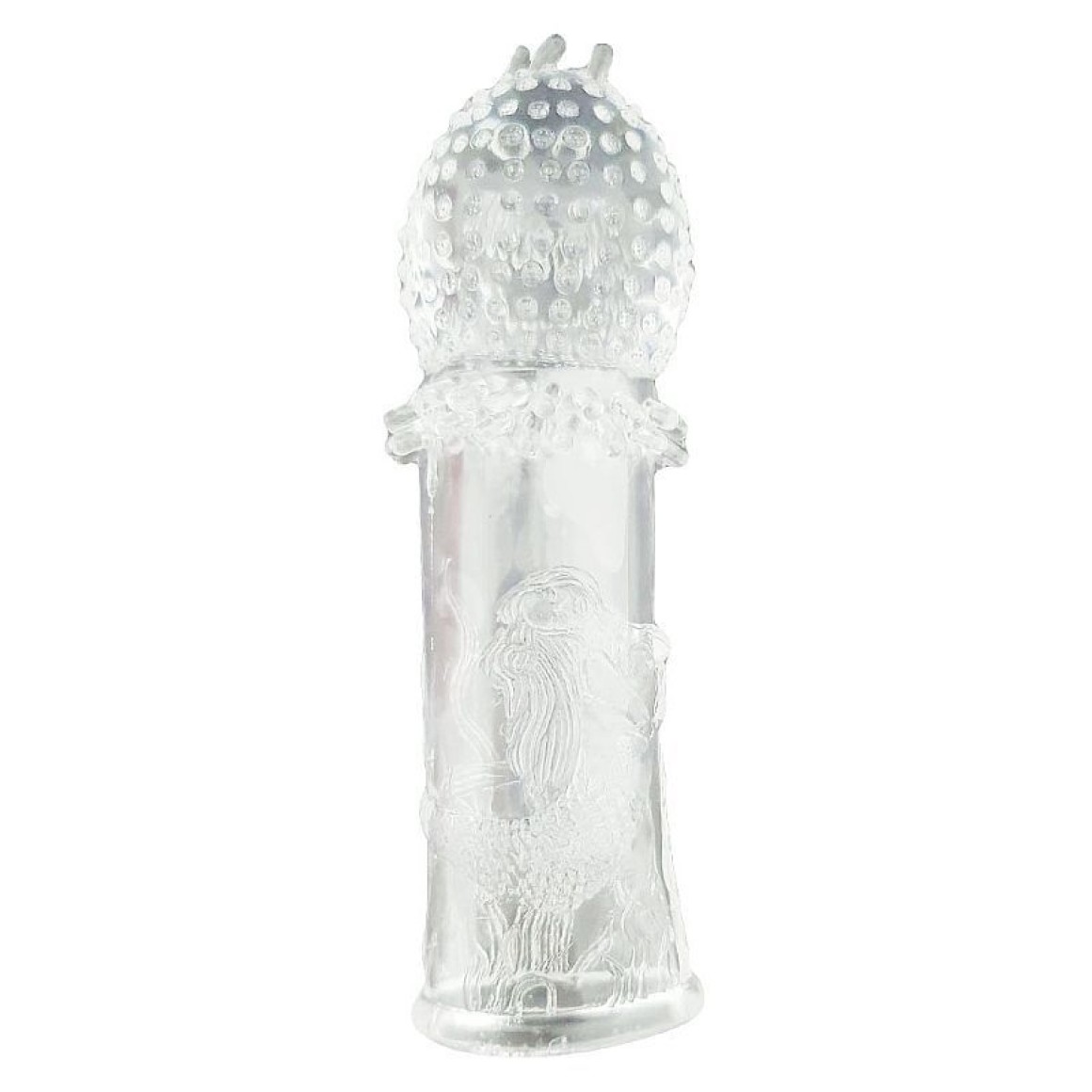 Capa peniana com textura, feita de gel transparente. Estes nódulos massageiam toda a vagina, dando mais prazer para sua parceira.