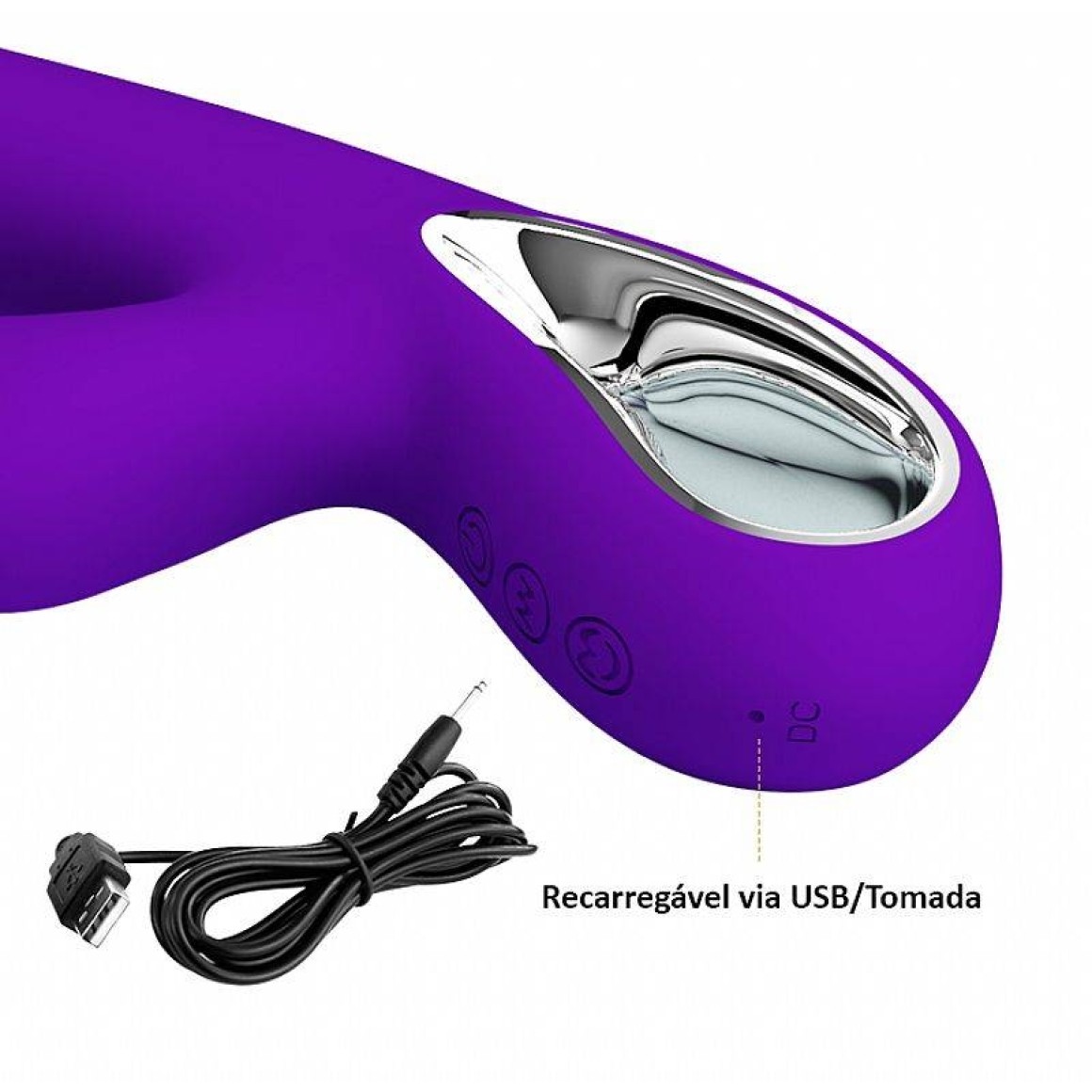 Vibrador ponto G e clitóris composto por silicone, material macio e com um toque aveludado.
