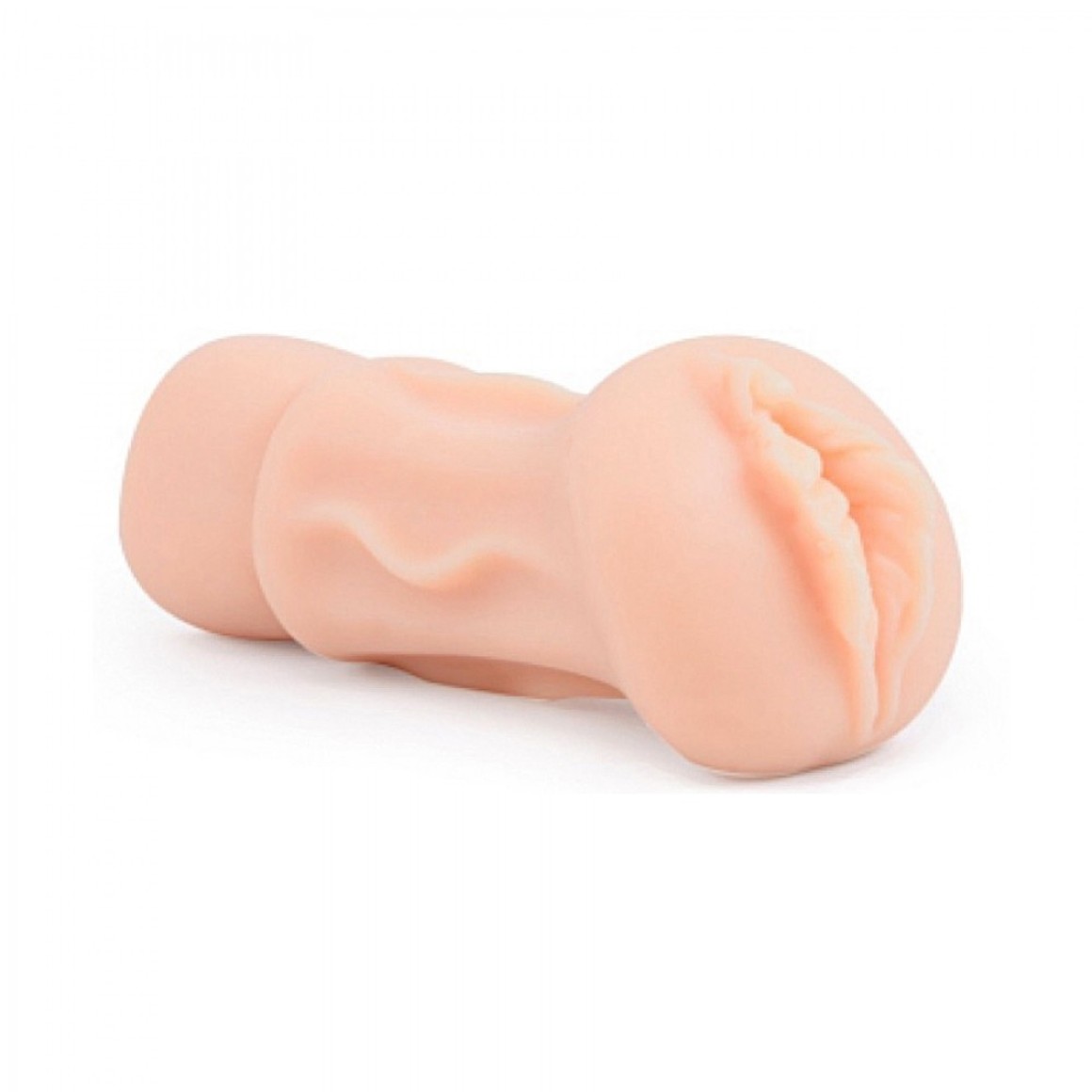 Masturbador formato vagina com lábios texturizados e saliências internas.