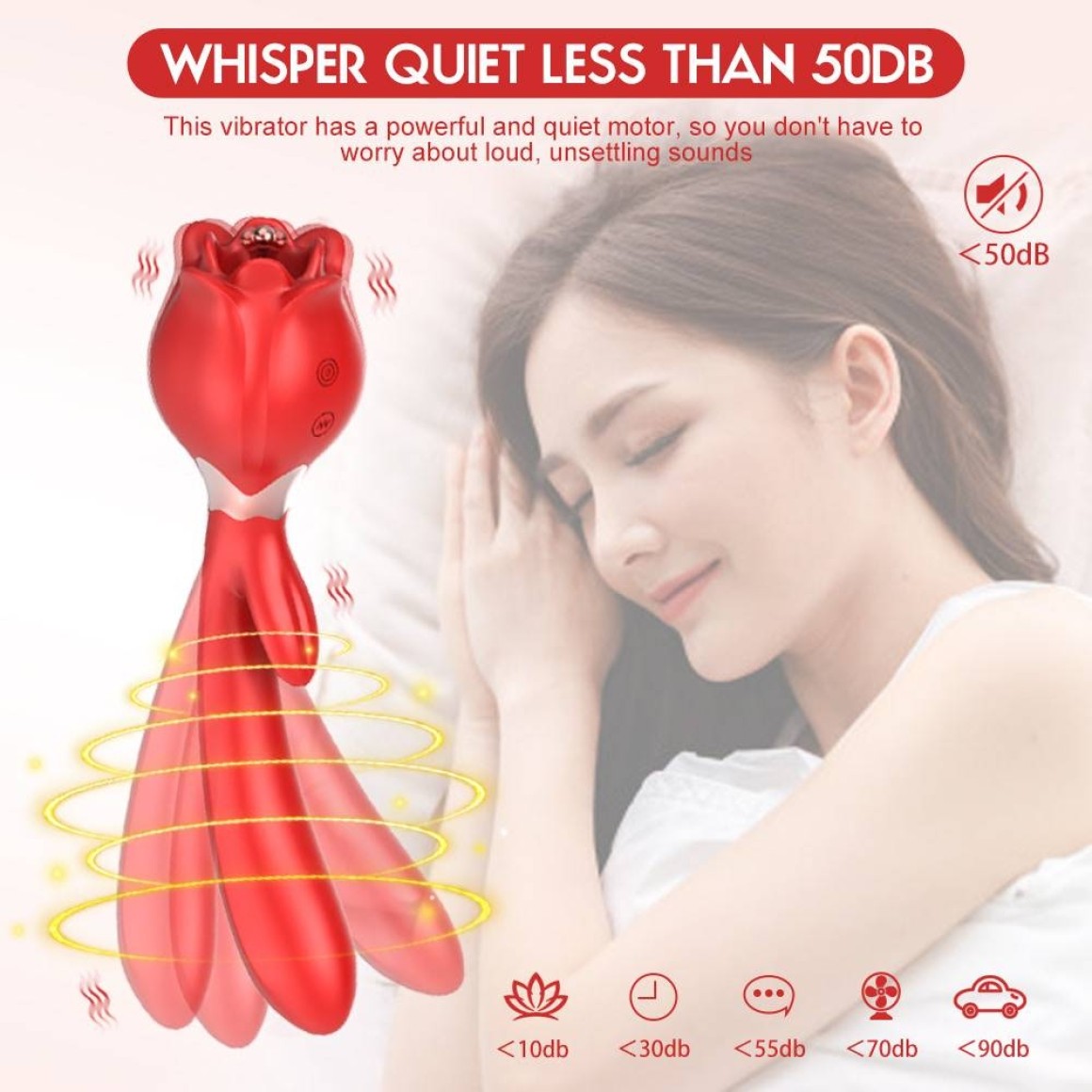 Em sua outra ponta, possui uma flor com 10 modos de vibração e acompanha duas pequenas pontas de silicone, para melhor estimulo.