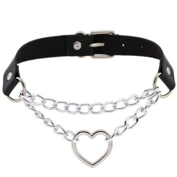 Acessório íntimo que une elegância, sensualidade e funcionalidade. Esta coleira bondage possui corrente metálica prateada e pingente de coração, adicionando um toque romântico ao visual fetichista. Produzida em PU de alta qualidade, garante durabilidade, conforto e estilo. Ideal para quem deseja explorar conexão, controle e erotismo com sofisticação.