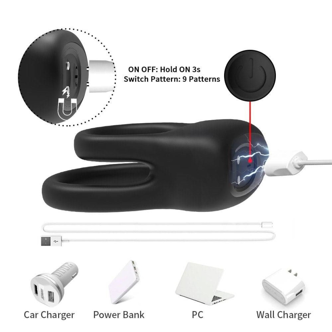 Anel Peniano Duplo Recarregável com 9 Modos de Vibração