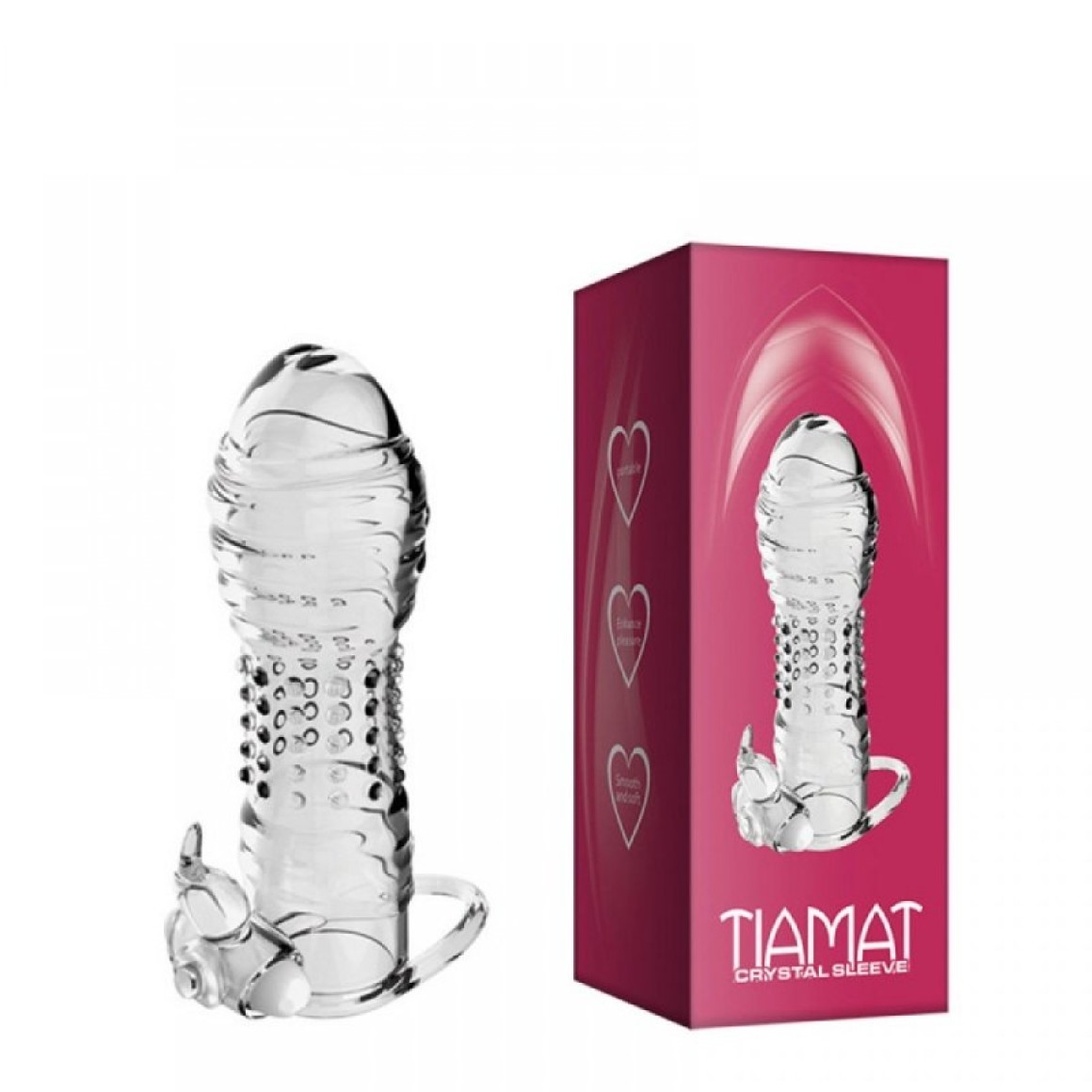 Capa peniana com estimulador clitoriano vibratório e 3,8 cm de extensão em sua ponta.