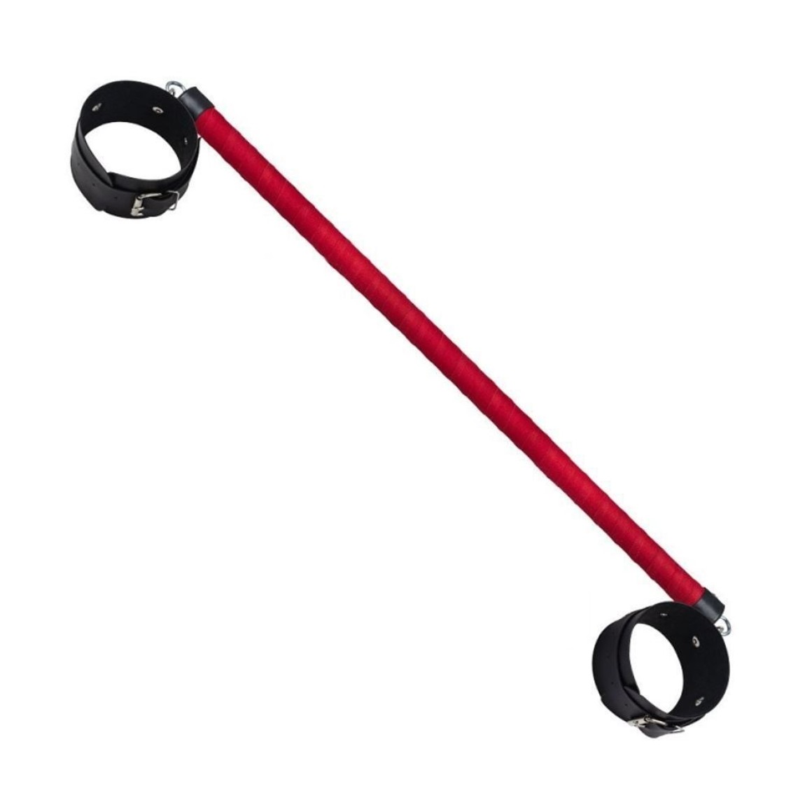 Separador de pernas confeccionado artesanalmente em madeira com revestimento emborrachado na cor preta.