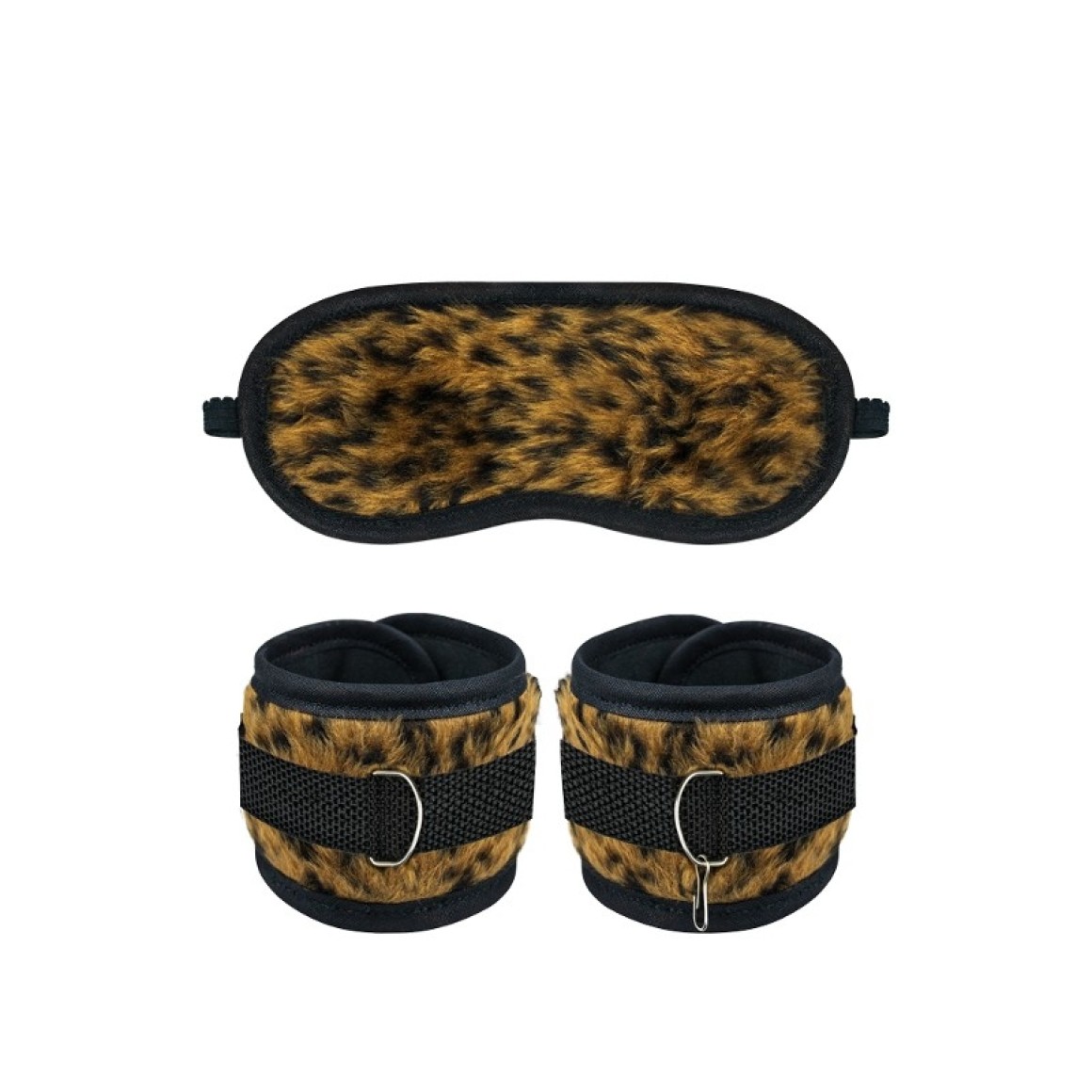 Kit composto por 2 peças, sendo 1 par de algemas e 1 venda.
