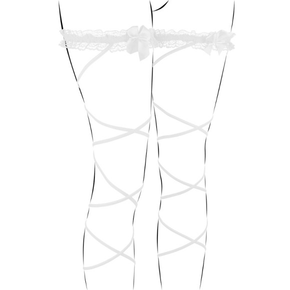 Confeccionada em cetim com persex e renda, com tiras para trançar nas pernas e lacinho.