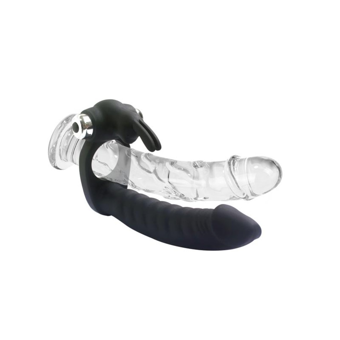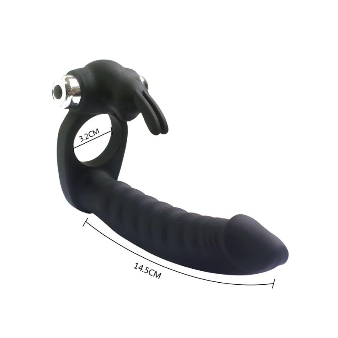 Anel companheiro com vibratório formato coelho, possui 7 modos de vibração.