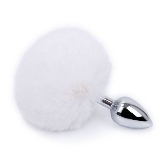 Plug anal de aço inoxidável com formato cônico com pompom na base.