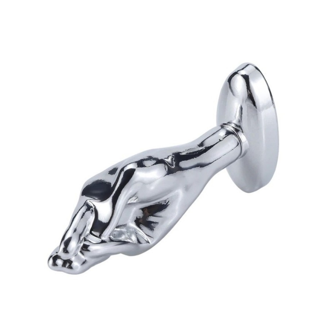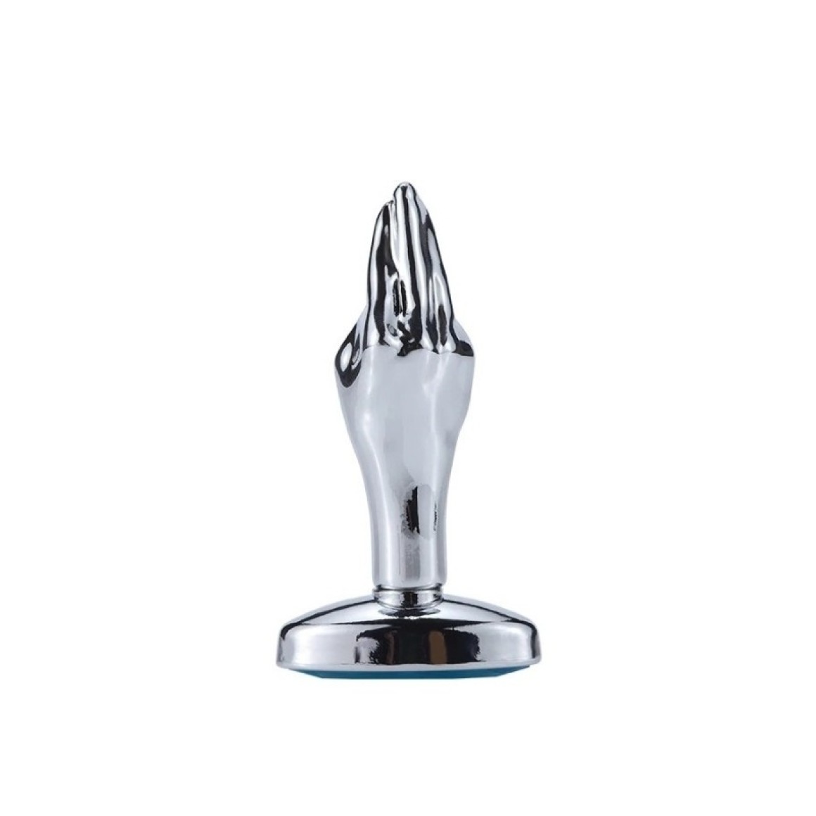 PLUG ANAL DE AÇO FORMATO DE MÃO COM JÓIA NA BASE