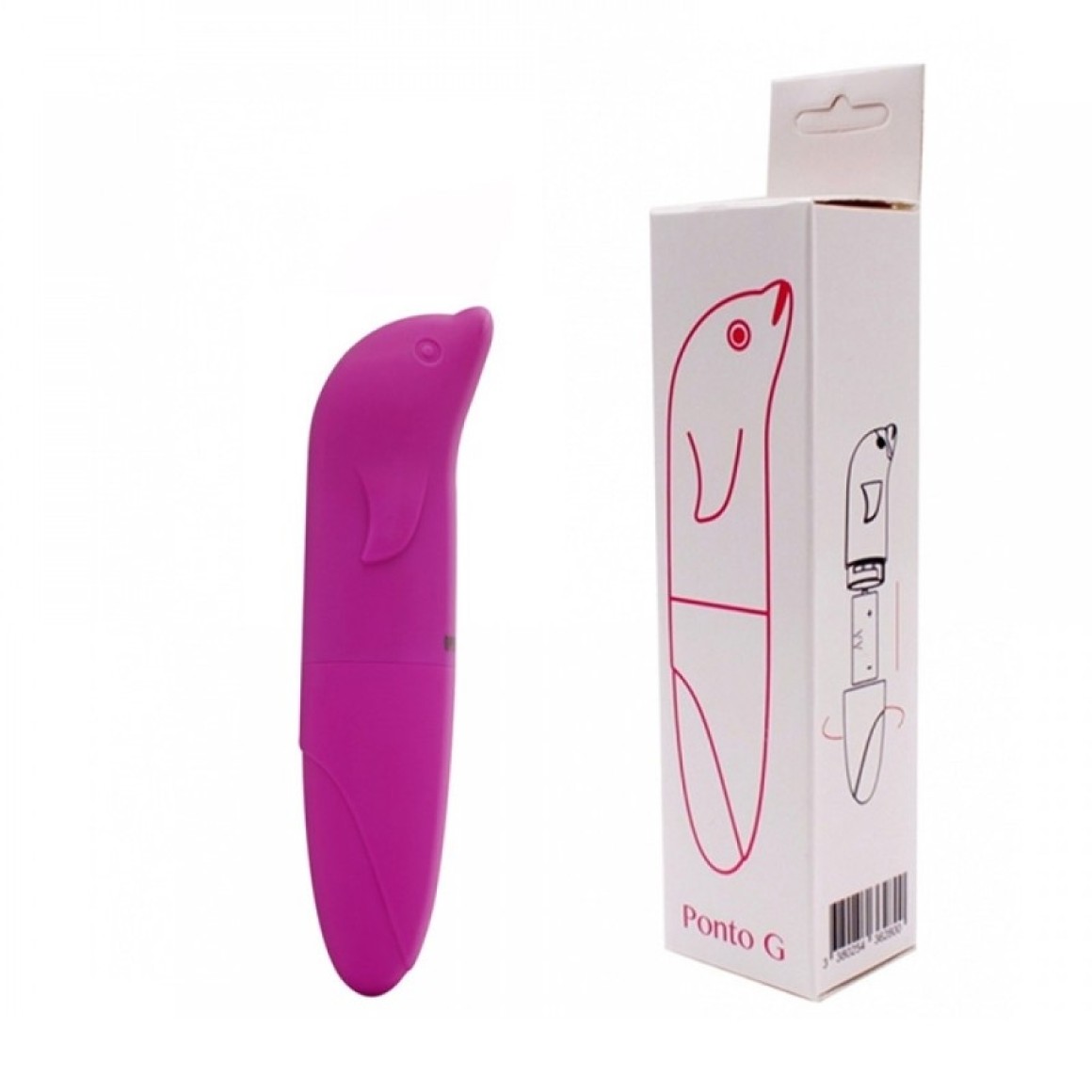 Vibrador Ponto G em formato de golfinho em ABS, super resistente, ponta levemente curvada, possui toque suave e aveludado. É pequeno e discreto para ser levado na bolsa.