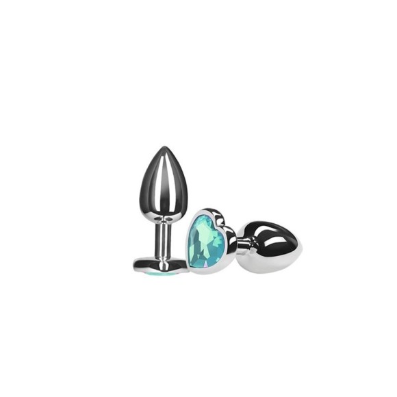 Plug anal formato coração em alumínio , possui em sua base uma pedra colorida lapidada como uma jóia.