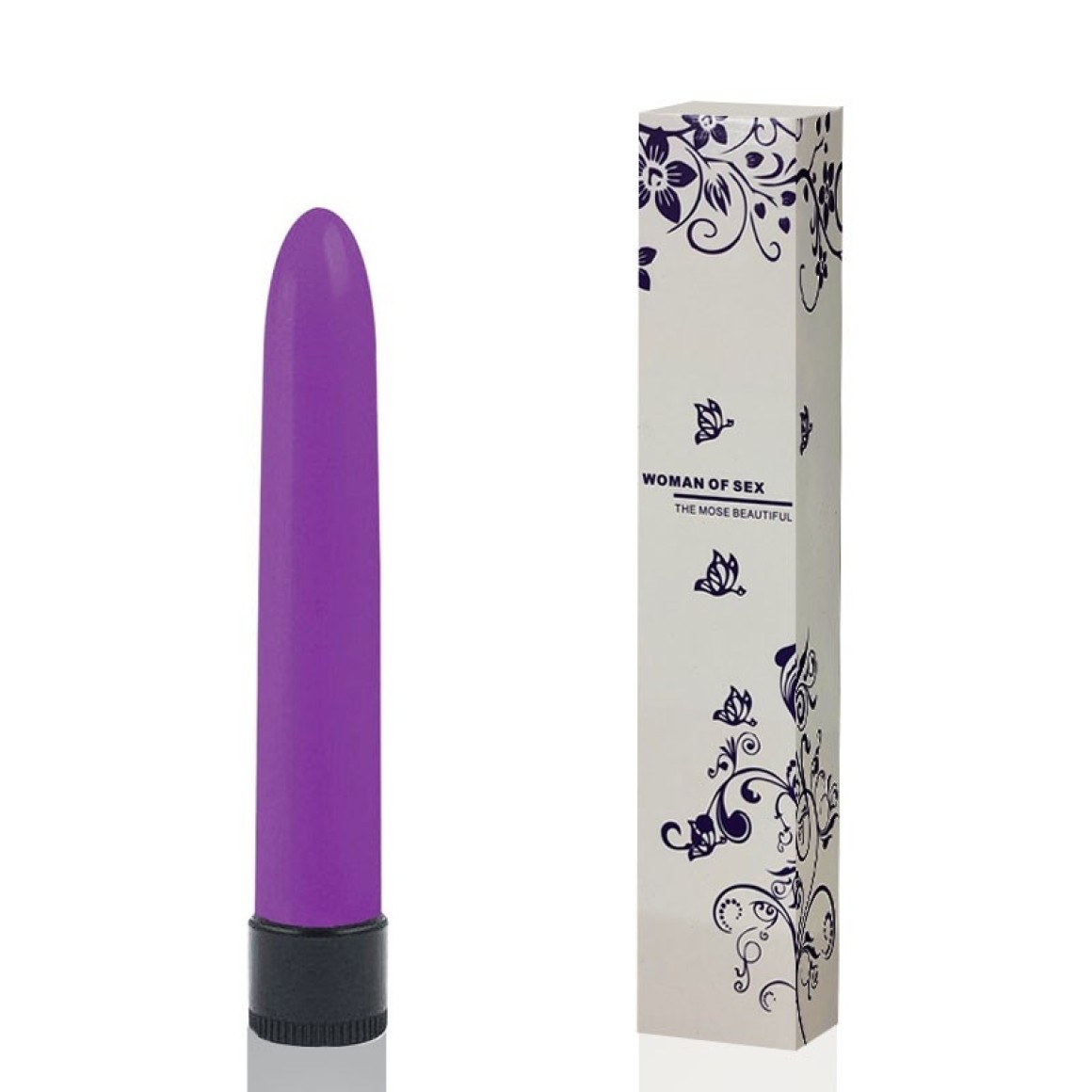 Vibrador personal 17 cm. Possui superfície lisa e um motor multivelocidade controlado a partir de um botão giratório em sua base.