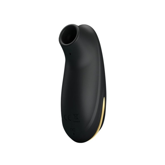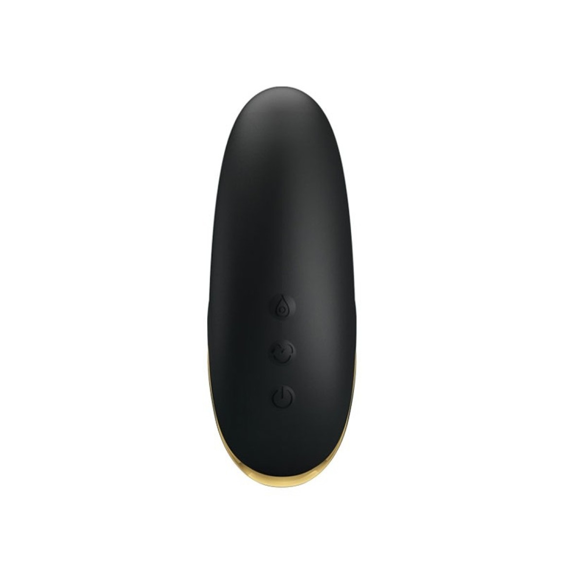 Estimulador feminino recarregável com sucção, base feita em aço inoxidável banhada em ouro 18k. Possui 7 funções de sucção.