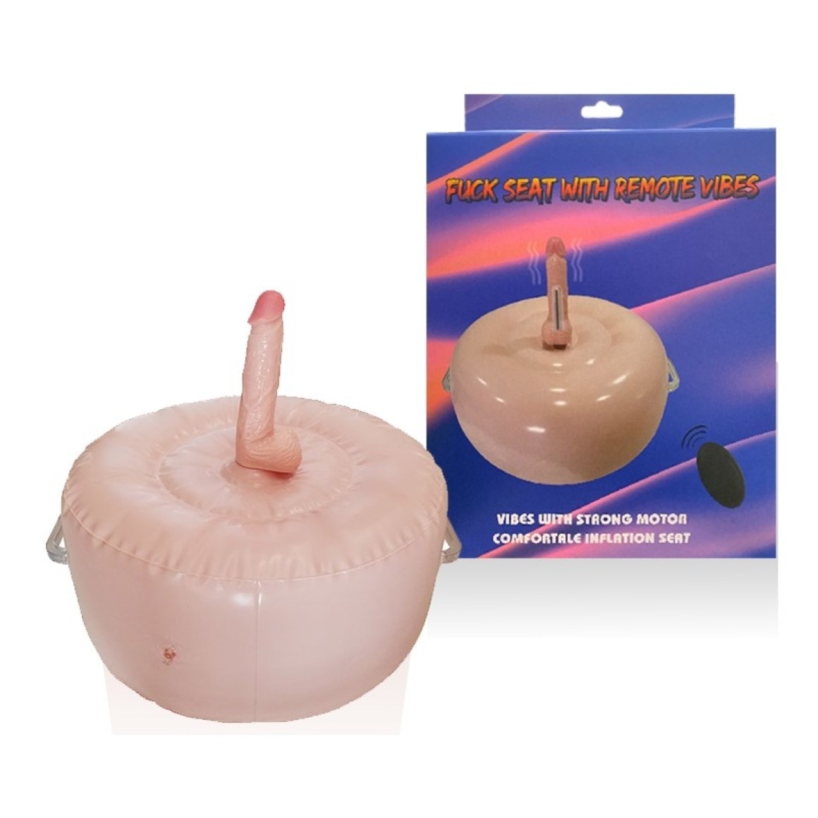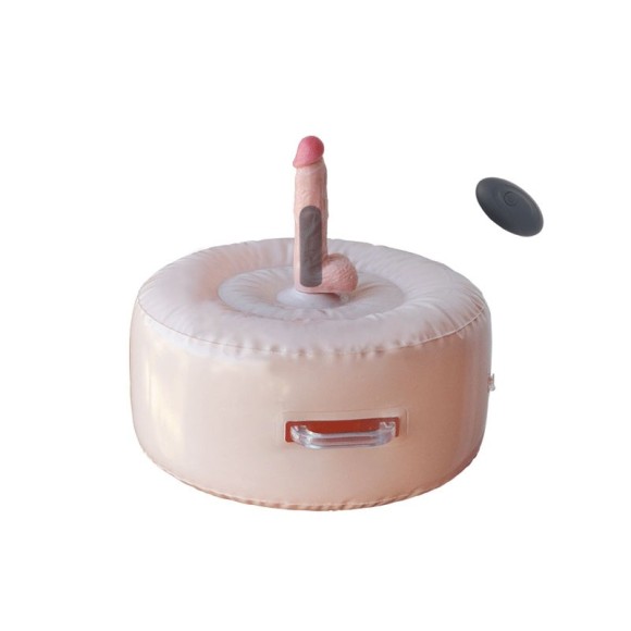 Puff inflável com prótese recarregável e controle remoto. Possui 10 modos de vibração. Suporta até 110 kgs.