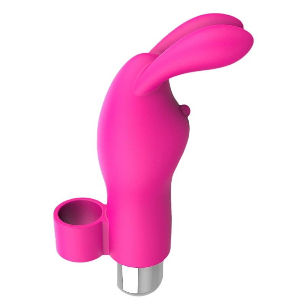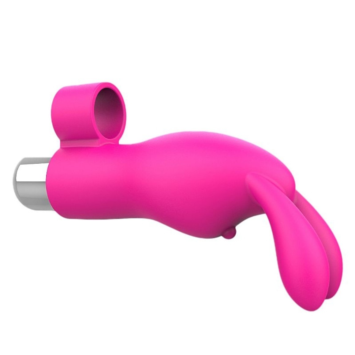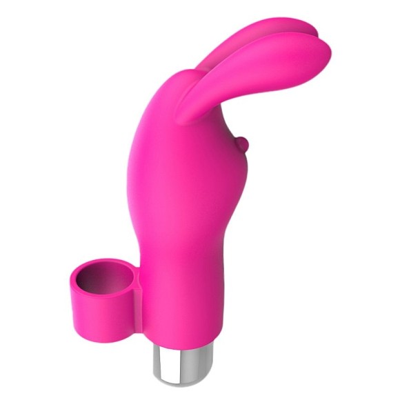 Dedeira em silicone com textura e relevos formato de coelho estimuladores de clítoris, com cápsula vibratória, que pode ser usada separadamente. A dedeira possui alças para os dedos, o que facilita o manuseio e a estimulação. 10 modos de vibração.