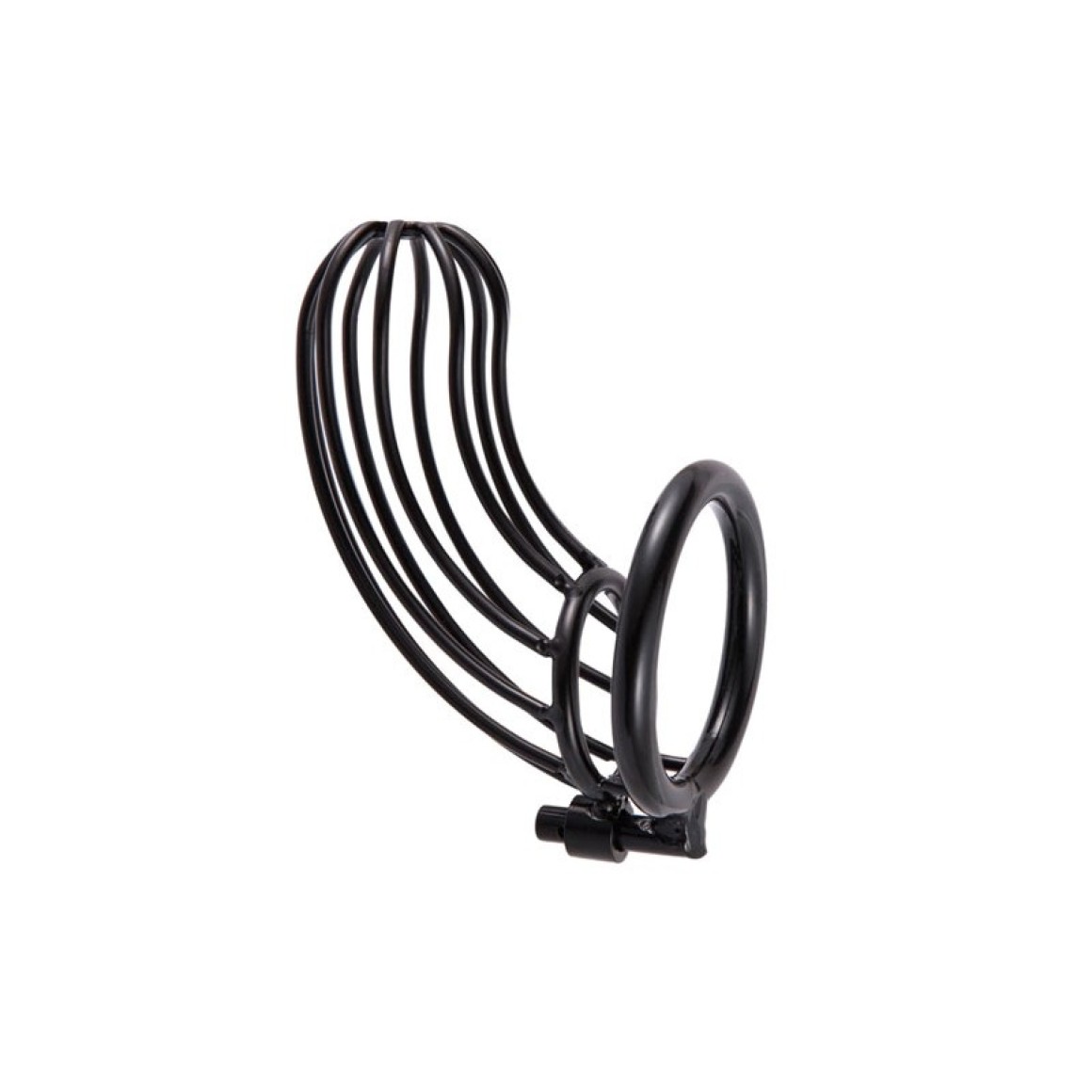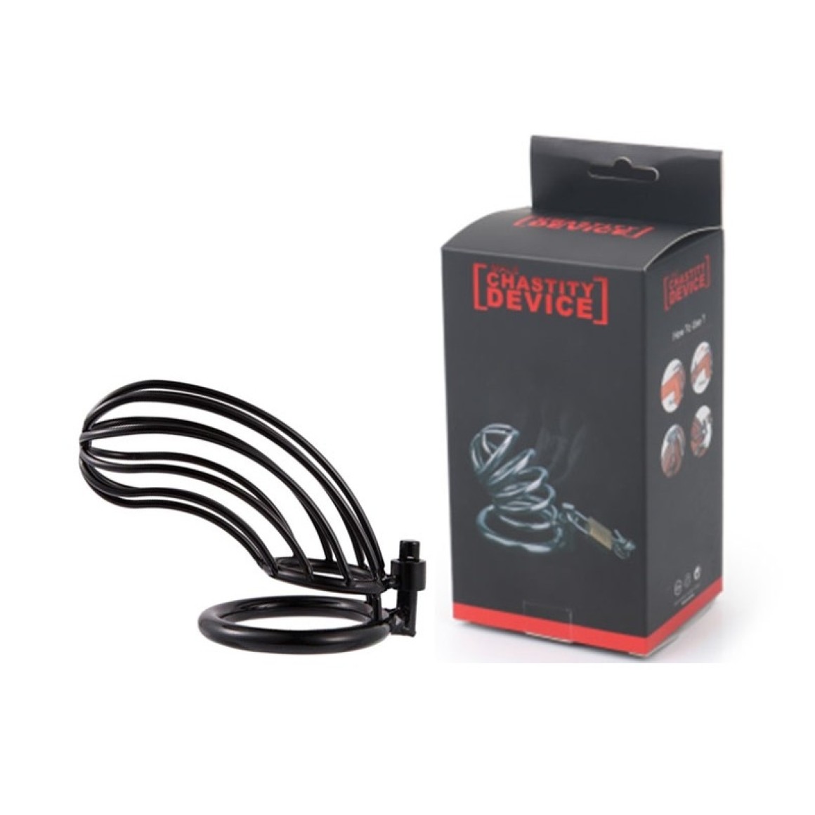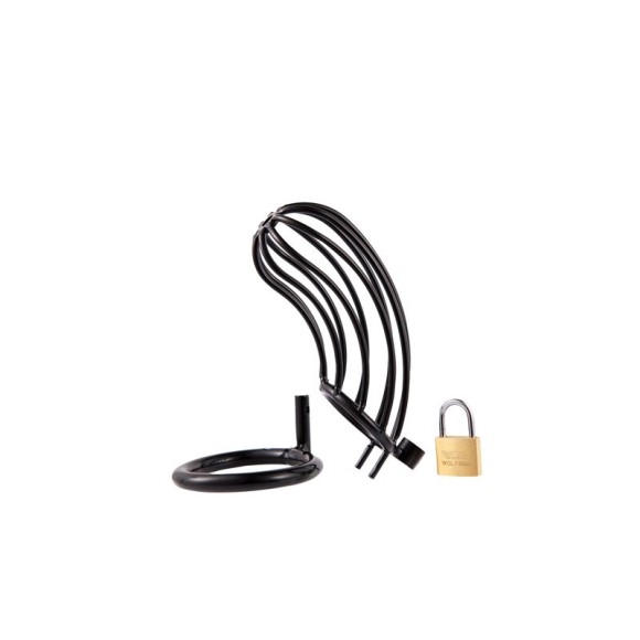 Cinto de castidade masculino vazado com anel para o escroto e cadeado.