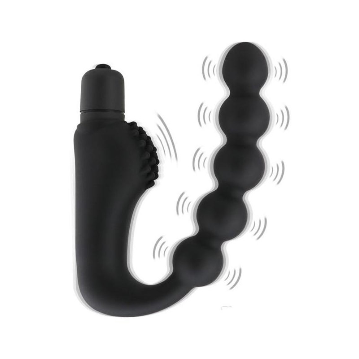 Estimulador de próstata com esferas escalonadas e cápsula vibratória