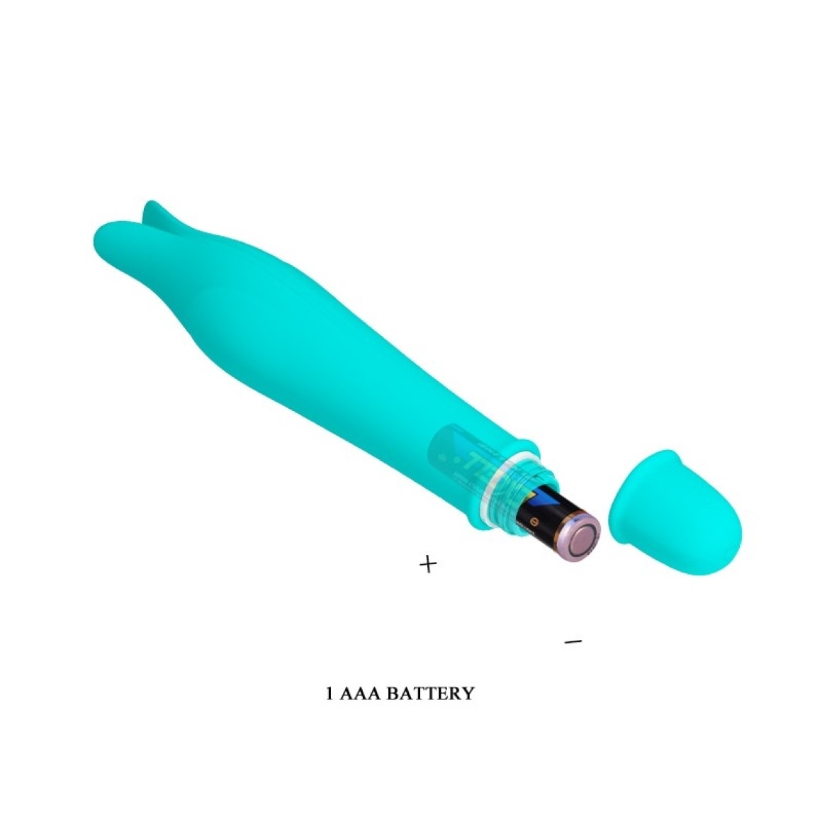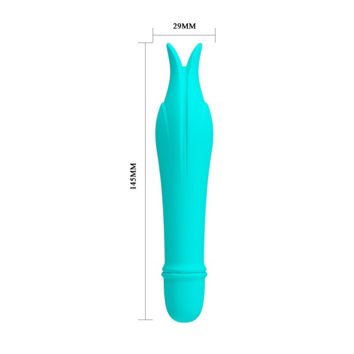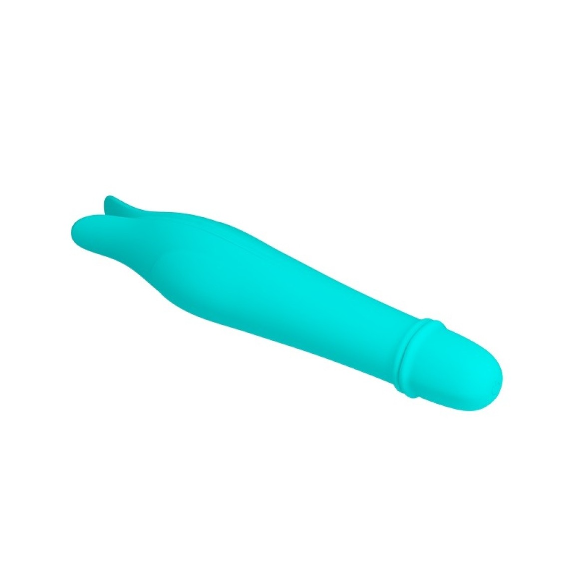 Mini vibrador em silicone com duas pontas, pode ser utilizado como estimulador externo ou para penetração, atingindo uma estimulação direto no ponto G.