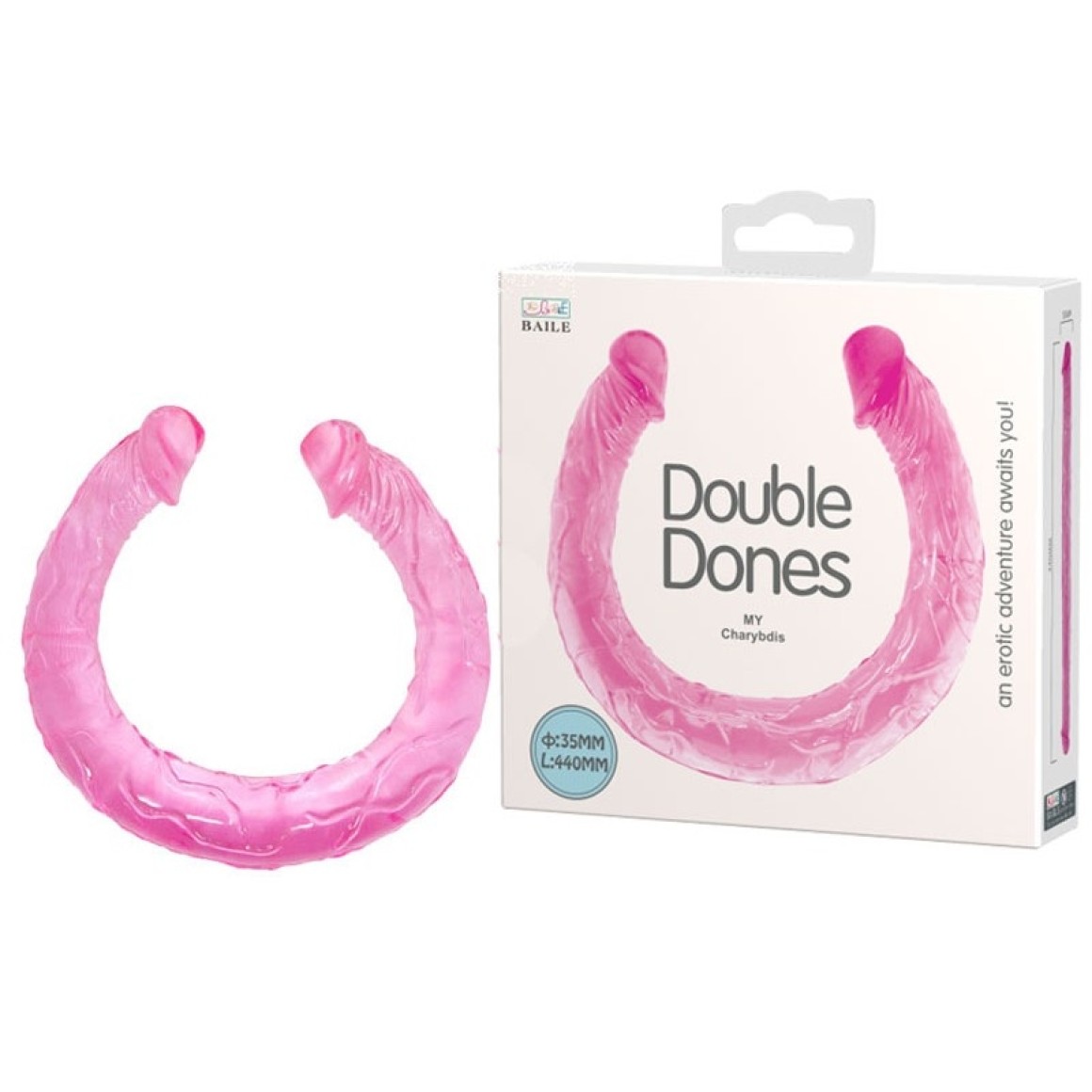 Pênis realístico 44 cm duplo com veias salientes e ponta para dupla penetração.