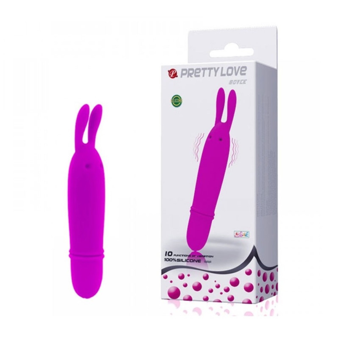 Mini vibrador formato coelho com orelhas, feito em silicone macio e 10 modos de vibração.
