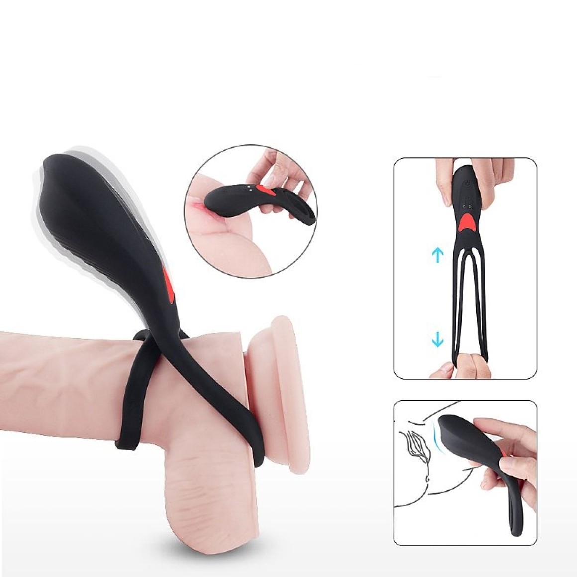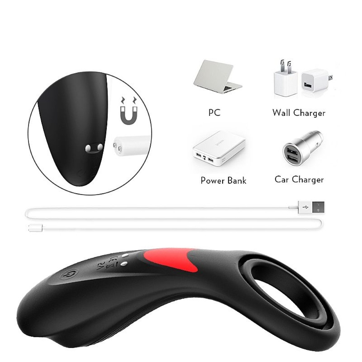 Rings é um anel peniano e de escroto, com estimulador de clitóris recarregável confeccionado em silicone, material mais nobre do mercado erótico, possui 9 modos de vibração com controle.