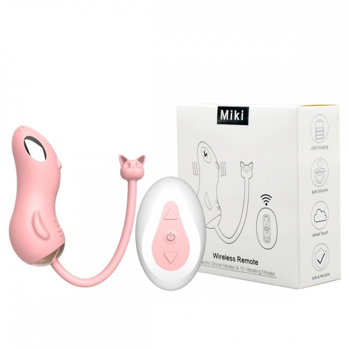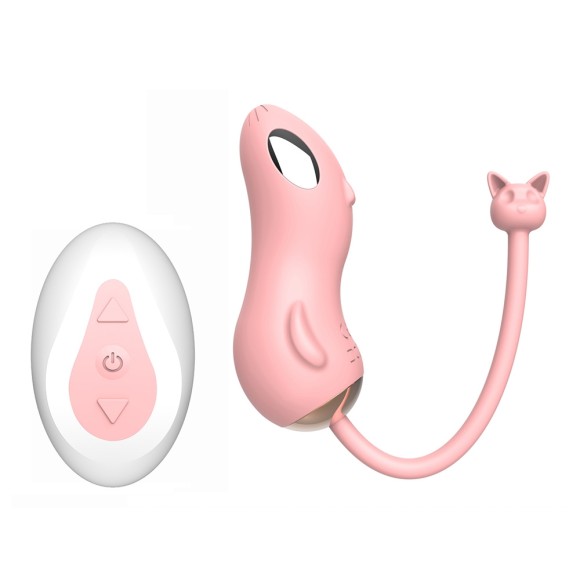Cápsula vibratória, recarregável. Com 10 modos de vibração e 10 modos de choque, com toque macio e aveludado, desing anatômico, controle remoto detalhe na ponta com formato de gatinho. Detalhe da descarga de choque em formato anatômigo, com textura.