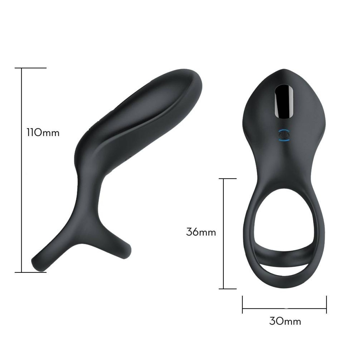 Anel peniano e testículos em silicone com estimulador clitoriano por vibração