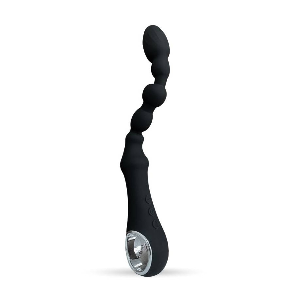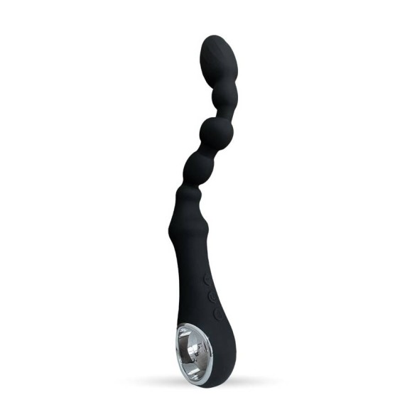 Vibrador recarregável escalonado flexível com alça metalizada. Possui 10 modos de vibração.