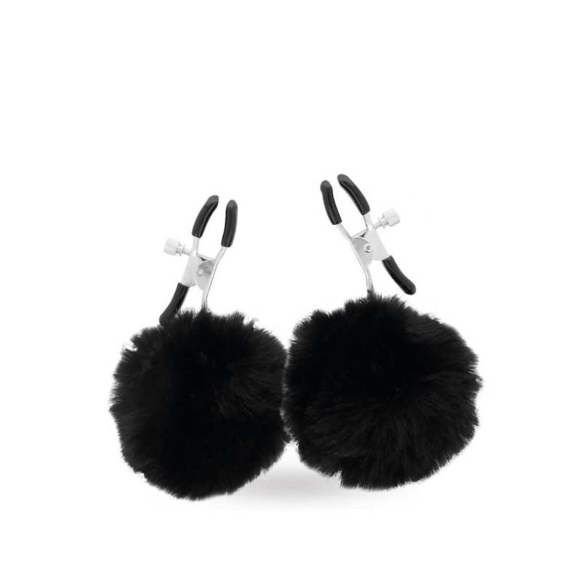 Grampos para mamilos com presilhas ajustáveis e pompom. Material: Metal e pelucia