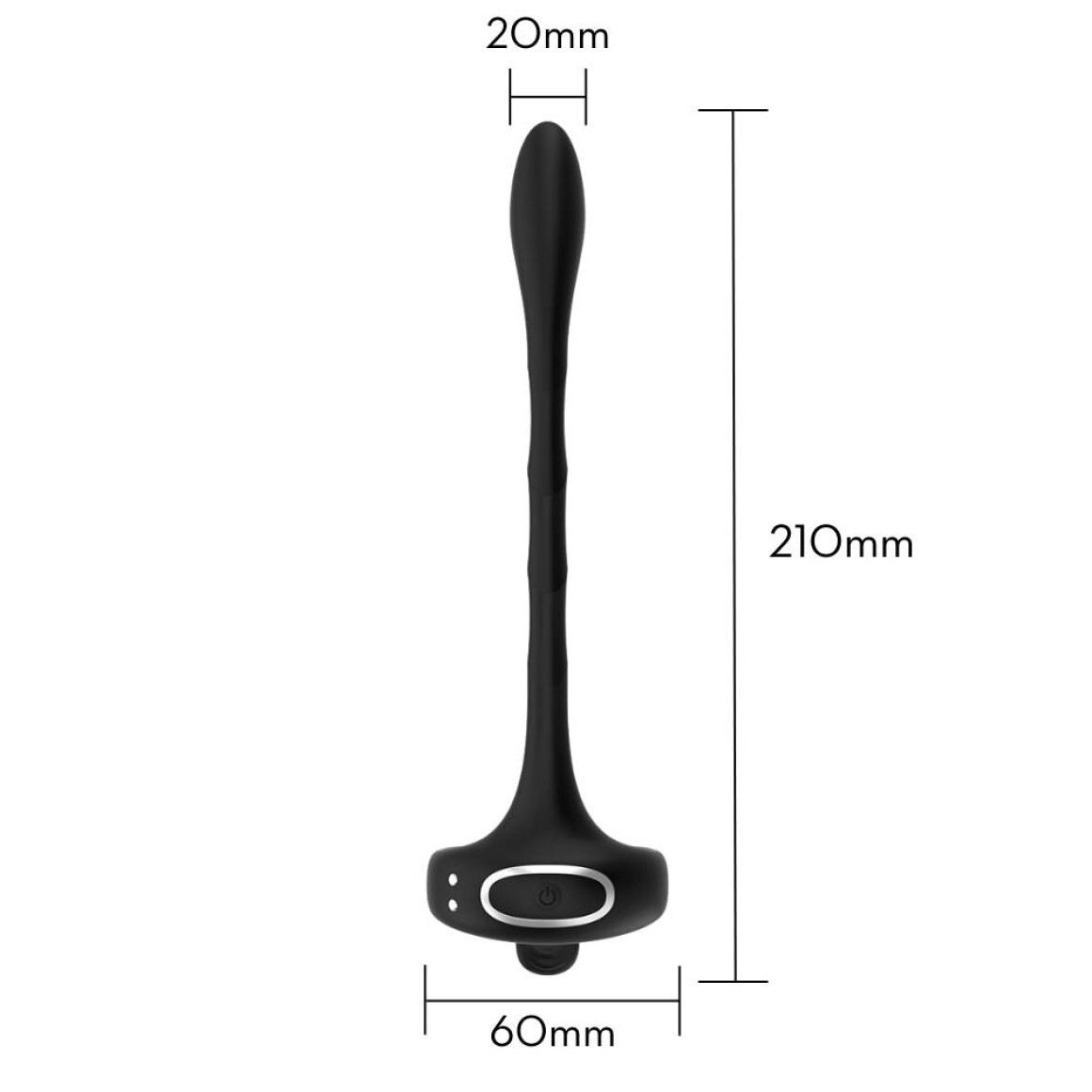 Anel peniano por aplicativo com massageador de testículo e dupla funcionalidade. Podendo ser utilizado para dupla penetração ou como um plug anal. Possui toque suave, aveludado e relevos massageadores na ponta.
