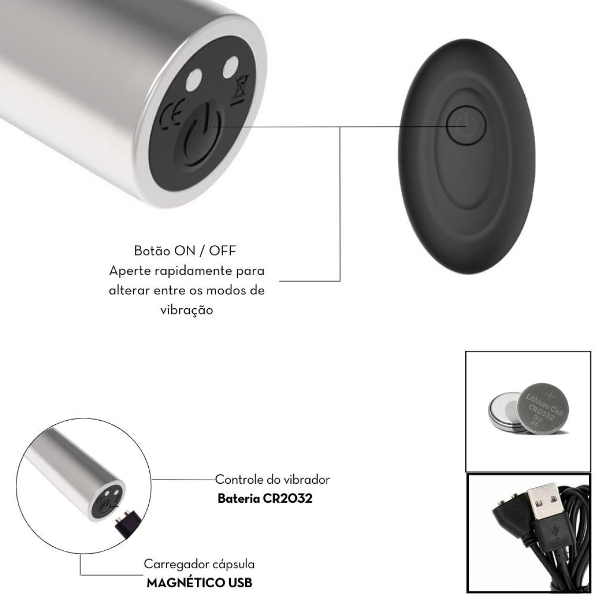 Cápsula vibratória com ponta arredondada estimuladora e controle remoto sem fio